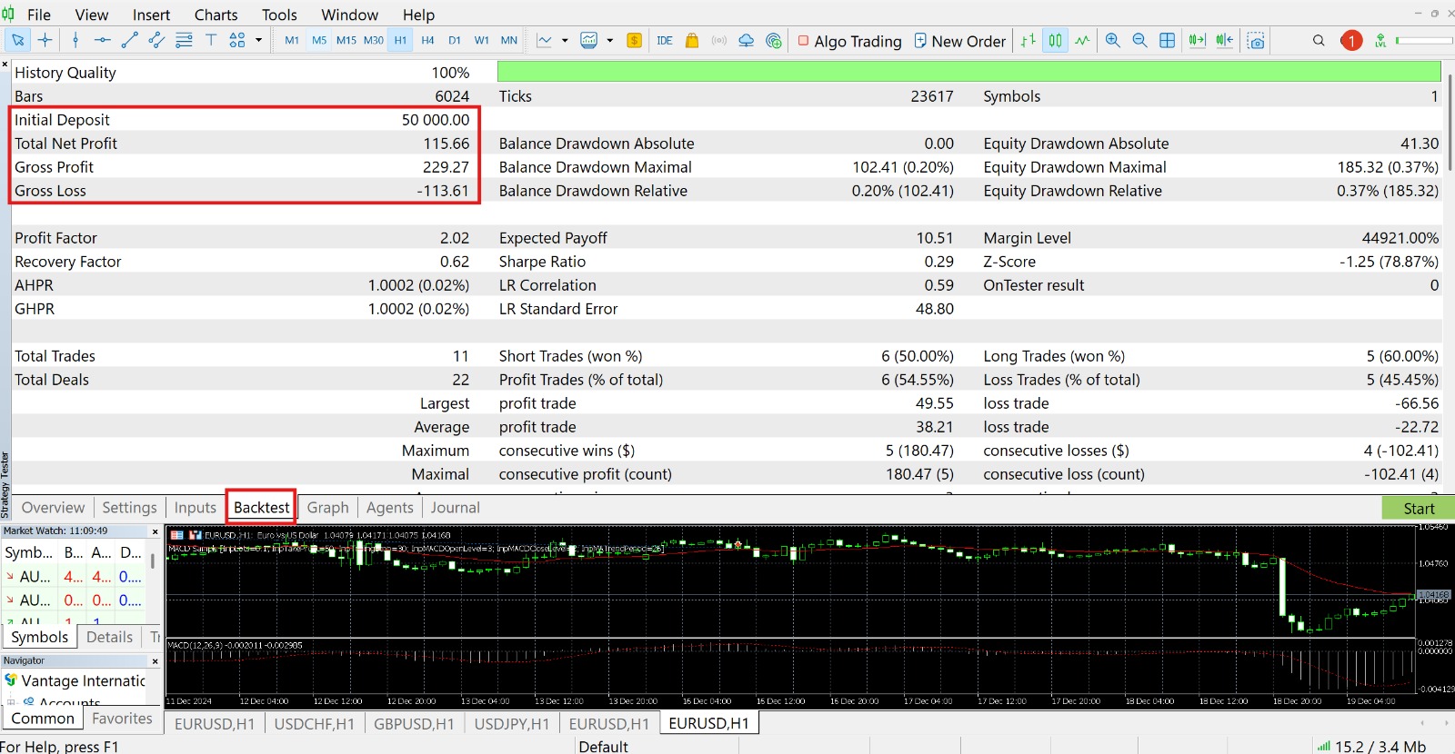 1. “Trading Strategy Tester – MetaTrader 5”. https://www.metatrader5.com/en/automated-trading/strategy-tester. Accessed 19 December 2024.