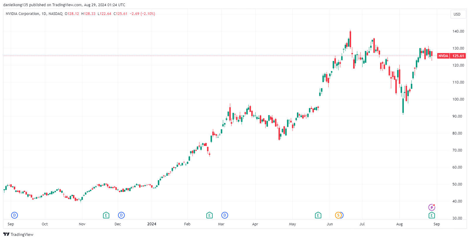 Il prezzo di chiusura di Nvidia al 28 agosto 2024 era di $128,30.