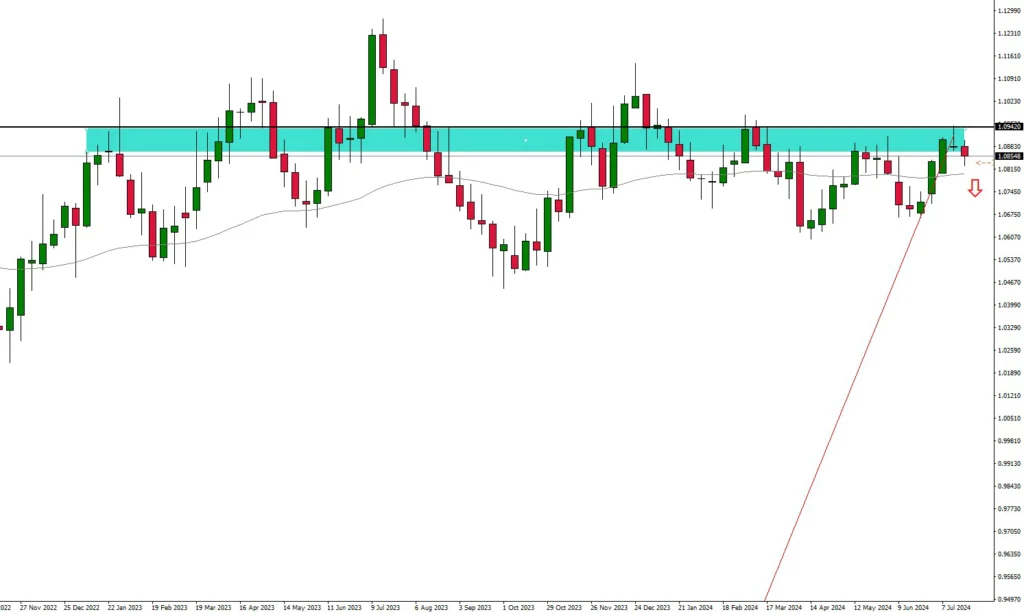Come si può vedere dal grafico settimanale, ora potrebbe esserci un potenziale di ribasso. Dati migliori del previsto potrebbero aiutare il dollaro. Nel complesso, l’attenzione si sposta ora sui dati economici, dato che i dati sull’inflazione continuano a indebolirsi. Il dato sarà pubblicato mercoledì 31 luglio alle 14:15 CET.