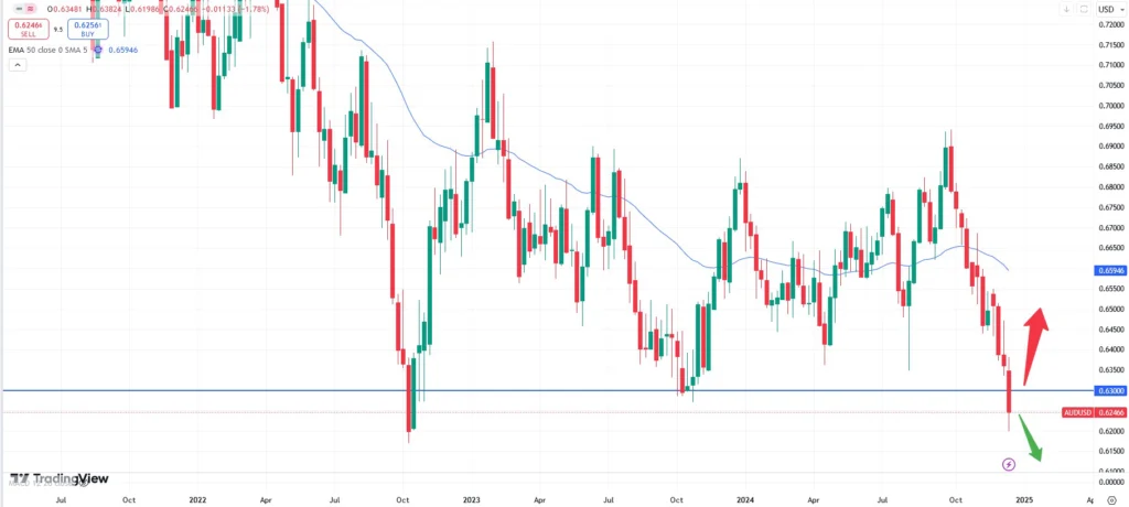 Uno sguardo più attento al grafico settimanale della coppia di valute AUDUSD rivela che il mercato ha appena rotto la zona di supporto psicologico di 0,6300. Potrebbe quindi verificarsi un ulteriore potenziale di ribasso. Tuttavia, il mercato potrebbe essere solo allungato e potrebbe anche trovarsi di fronte a prese di profitto. Questo potrebbe portare il mercato a salire nei prossimi giorni. L’evento di attualità sarà pubblicato il 27 settembre 2024 alle ore 14:30 CET.