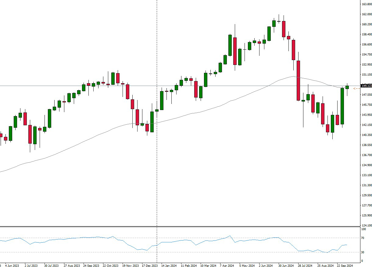 Il grafico settimanale della coppia USDJPY indica un potenziale breakout della resistenza a 149,36. Se questo breakout regge, il tasso di cambio potrebbe impennarsi verso 155,21.