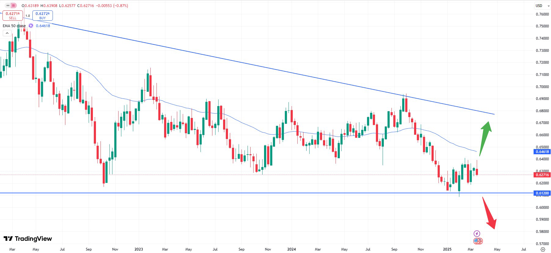 Se il prezzo dovesse rompere la zona di 0,6200 si potrebbe assistere a una spinta verso livelli più bassi. Anche i titoli azionari statunitensi potrebbero indebolirsi ulteriormente. L’indice australiano sarà pubblicato il 26 marzo 2025 alle 01:30 CET.