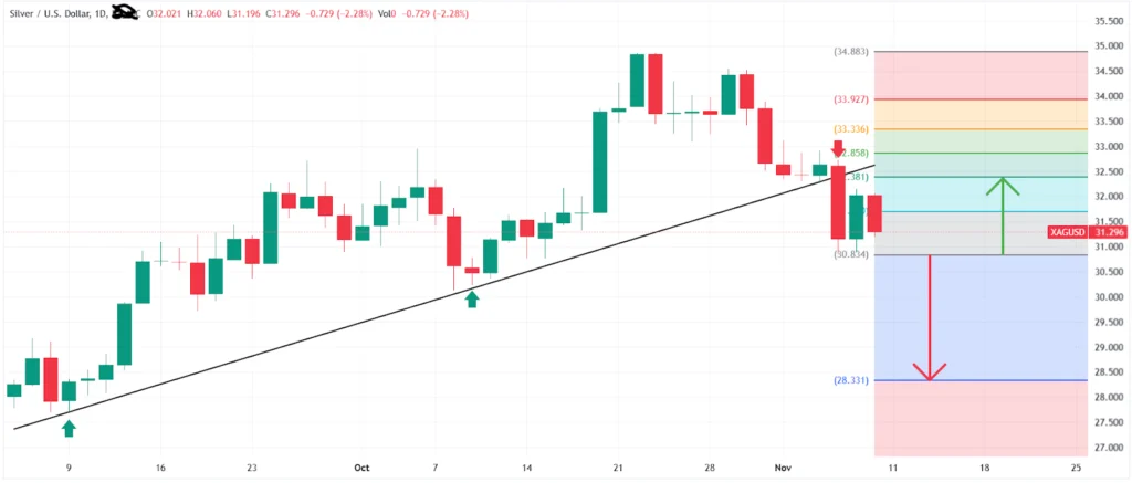 Mercoledì i prezzi dell’argento sono scesi a circa 31,50 USD per oncia, segnando un minimo di quasi tre settimane, sotto la pressione di un dollaro più forte a seguito dei primi exit poll che hanno mostrato risultati favorevoli a Trump. Ciò ha alimentato un rinnovato ottimismo sul “Trump trade”, alimentando il sentimento del mercato e pesando sui beni rifugio come l’argento.