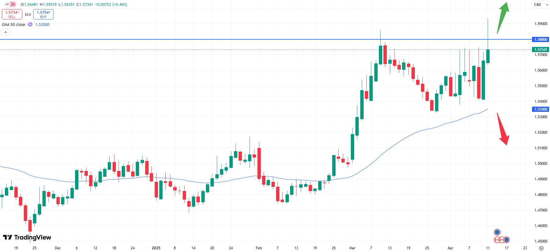 Il grafico giornaliero della coppia valutaria EURCAD mostra la zona di resistenza tecnica a 1,5800. Qualsiasi rottura di questa zona potrebbe scatenare un ulteriore slancio verso l’alto. Nel frattempo anche l’euro è forte e potrebbe aiutare questa coppia a salire ancora. La decisione sui tassi si terrà mercoledì 16 aprile alle 15:45 CET.