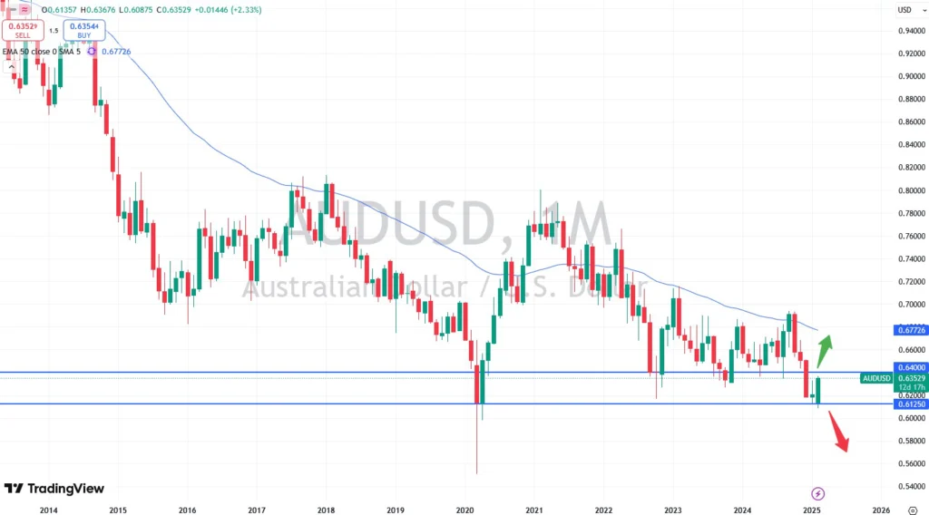 Il grafico mensile sopra riportato mostra che il rialzo potrebbe continuare verso la media mobile a 50, che sarebbe uno dei prossimi fattori limitanti a circa 0,6750. Il mercato deve inizialmente rompere la zona di resistenza orizzontale a 0,6400, affinché lo slancio positivo continui. Un’esclusione dei dazi recentemente implementati dagli Stati Uniti potrebbe aiutare, mentre l’imminente taglio dei tassi potrebbe essere già prezzato per ora. La decisione sui tassi di interesse si terrà martedì 18 febbraio alle 04:30 CET.