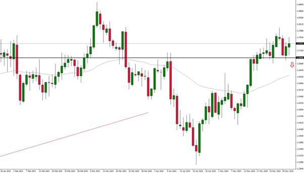 Secondo il grafico giornaliero, una rottura del supporto a 1.2690 potrebbe innescare un ulteriore potenziale di ribasso basato sulla tendenza a lungo termine. La figura sarà rilasciata il 5 giugno alle 14:15CET.
