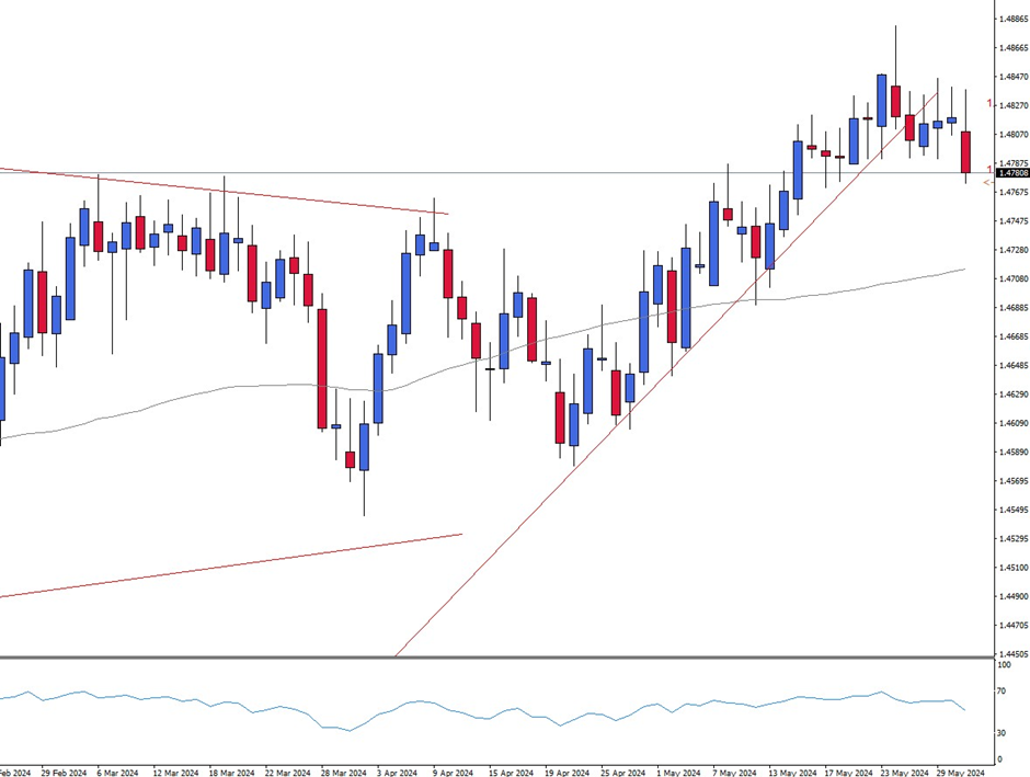 La coppia EURCAD potrebbe offrire interessanti opportunità. Il mercato attualmente viene scambiato in un’area di resistenza e potrebbe ora mostrare un nuovo potenziale al ribasso, a meno che la zona 1,4800 non venga rotta al rialzo. Nel corso della successiva conferenza stampa potrebbero arrivare novità importanti. Un accenno di possibili ulteriori movimenti dei tassi di interesse potrebbe quindi muovere il CAD. La decisione sul tasso di interesse avrà luogo il 5 giugno alle 15:45CET.