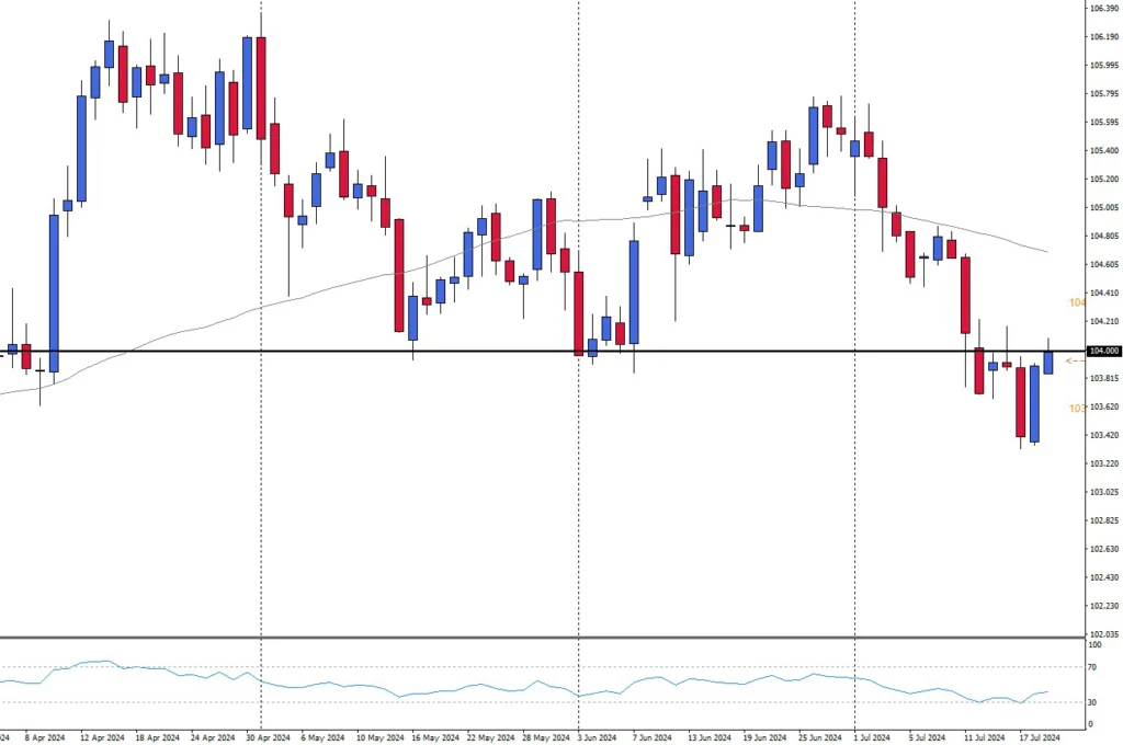 Tuttavia, l’indice del dollaro, mostrato sopra nel grafico giornaliero, sta attualmente mostrando una nuova forza. Se l’attuale livello di 104,00 verrà rotto al rialzo, il mercato potrebbe salire e il biglietto verde potrebbe guadagnare ulteriore forza rispetto alle altre valute. L’indice dei prezzi sarà pubblicato venerdì 26 luglio alle 14:30 CET.