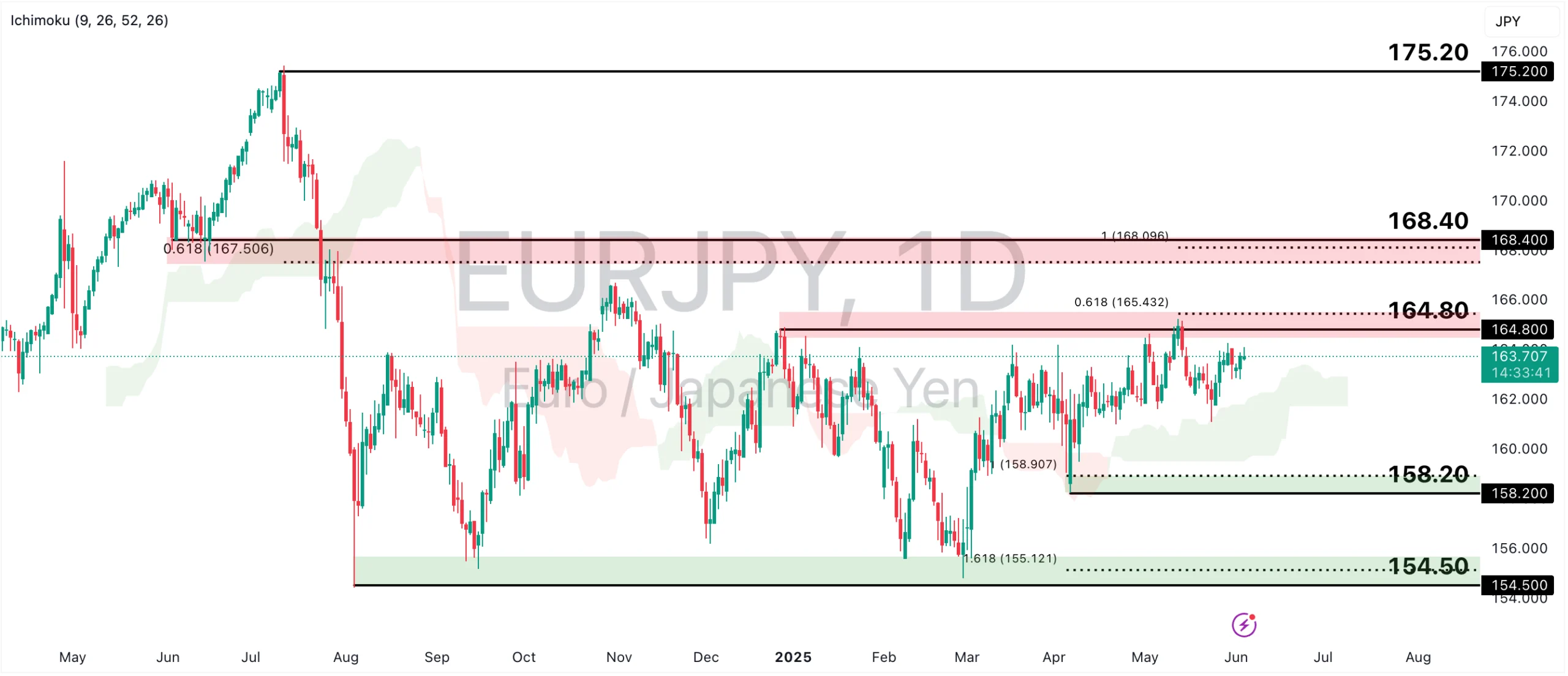 EURJPY is showing tentative strength, but gains are capped as both currencies face competing pressures. The Japanese yen could find support from the Bank of Japan’s (BoJ) hawkish tone, with BoJ Governor Ueda signalling readiness to raise interest rates if economic conditions warrant. However, the recent weakness in demand for Japan’s super-long government bonds reflects broader market concerns. Adding to the uncertainty, Japan’s auto sector remains vulnerable to U.S. tariffs, which continue to pose a risk to the country’s export outlook and overall economic stability.