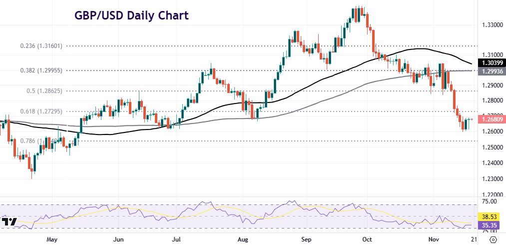 GBP fell near to recent lows before rebounding closer to 1.27. Governor Bailey was relatively cautious stating that the UK government’s recently announced increase in employer National Insurance contributions could result in higher prices, lower employment or other outcomes. The Governor said the BoE will have to move cautiously on policy as it monitors these impacts.