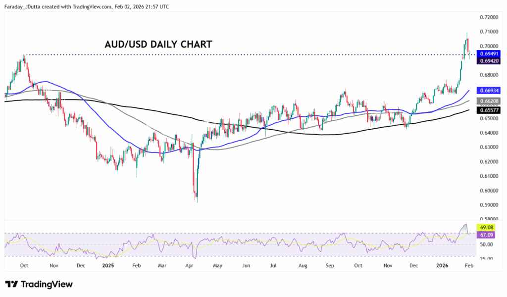 FX: USD firmed strongly for a second straight day with prices getting above the long-term trendline which taps the 2011 and 2021 lows. Fed Chair nominee Warsh is boosting the buck as bulls like a more market friendly and inflation fighting former Fed governor. Relief from a more dovish choice is also helping. Better than expected ISM Manufacturing saw the 10-yield US Treasury yield bounce off the 200-day SMA at 4.23%. The headline moved above 50 for the first time in 12 months and was the biggest expansion since 2022. Note that given the partial government shutdown, the BLS have delayed the January NFP report due Friday and the December JOLTS report due Tuesday.