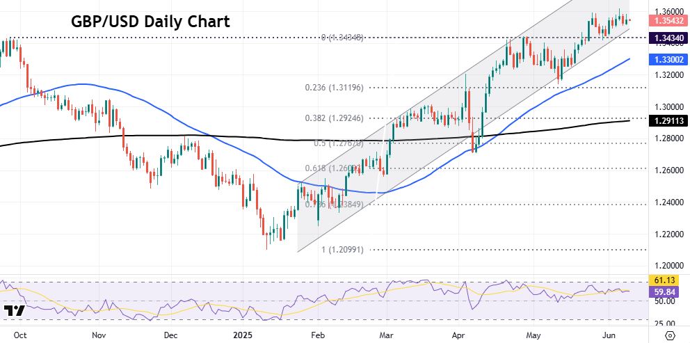 USD/JPY is trading around the 50-day SMA at 144.41 as it navigated improved, but contractionary final Q1 GDP. There were reports that the government is considering buying back super-long JGBs at low interest rates. This would work alongside trimming issuance of similar bonds amid the recent jump in yields. Next week sees the BoJ meeting while trade talks are ongoing with Japan’s negotiator said to be planning a visit to the US this week.