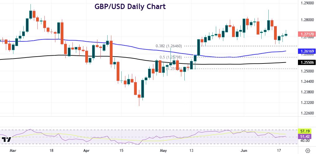 GBP stayed above 1.27 to finish in the green for a third consecutive day. Headline inflation hit the BoE’s 2% target for the first times since 2021. But services inflation printed two-tenths above estimates and 0.4% above the most recent BoE forecast.