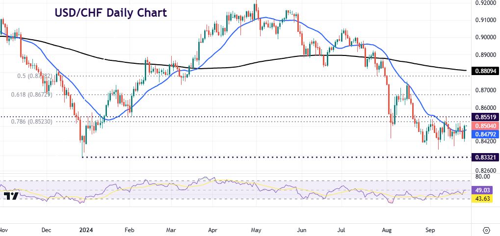 We don’t cover the Swiss National Bank too much, but could it spring a surprise and follow the size of the FOMC rate cut? It is likely to continue its easing cycle with another 25bps cut for the third straight time, which will take the policy rate to 1%. But there is the potential for a larger cut of 50bps, with around 45% odds. Ongoing easing in inflation was seen in August’s CPI print at 1.1%. That was below the 1.2% estimate and well below the SNB’s overall Q3 forecast of 1.5%. This ongoing moderation should give the SNB more confidence on easing and see downward tweaks to its inflation forecasts.