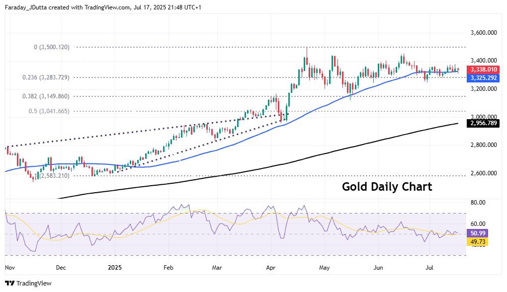 Bullion continues to track around the 50-day SMA at $3,325 and remains rangebound between roughly $3,200 and $3,400. Since hitting the all-time high above $3,500 in April, price have stalled as traders await the next major catalyst to challenge that level again. Prices are still up some 28% this year, handsomely outperforming global stock markets and other commodities. Geopolitical risks linger, the global trade war is ongoing and central bank buying continues to underpin support for the yellow metal. China added to its official golds reserves in June, for an eight straight month. Diversifciation away from USD should remain a key factor.