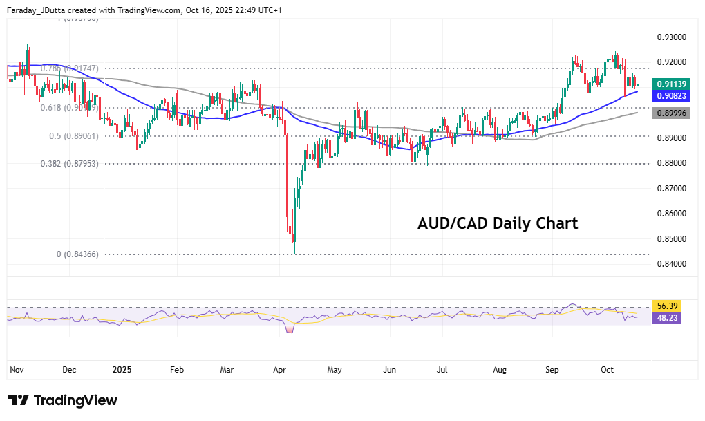 AUDCAD pushed higher in early September, out of its previous range that had prevailed in the cross since May. A prolonged period of range trading typically sees a sharp move with range expansion in line with the dominant long-term trend, and prices rose sharply through a major Fib level of the September 2024 to April 2025 move at 0.9016. This former ceiing is now major support. The pair broke through the next retracement level (78.6%) at 0.9174 but found resistance above 0.92 on several occasions. A higher range can develop between 0.9050/0.9250 with initial support at the 50-day SMA at 0.9079.