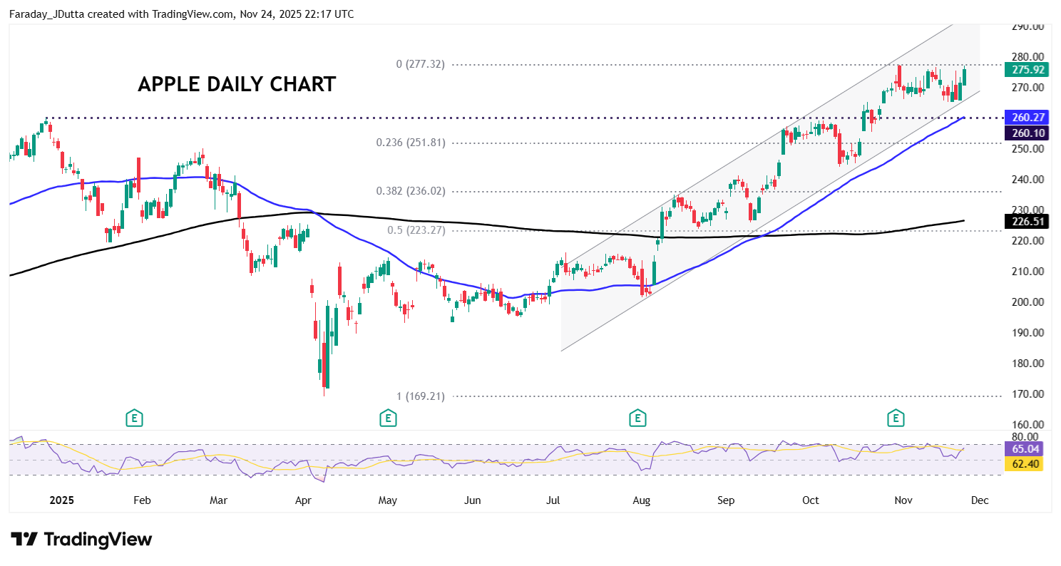 News that Apple was cutting thousands of jobs across its sales orgnaisation was a very rare layoff signal from the iPhone maker. Chartwise, prices have consolidated in recent weeks though price action has been strong over the last two days, having traded at the bottom of the recent range around $265 in the latter part of last week. The stock also touched the lower part of the bull channel seen since lows in the summer. Bulls have enjoyed the rebound off that support to the top end of the range, just below the record high at $277.32. More bullish momentum could take the stocks to a fresh all-time top.
