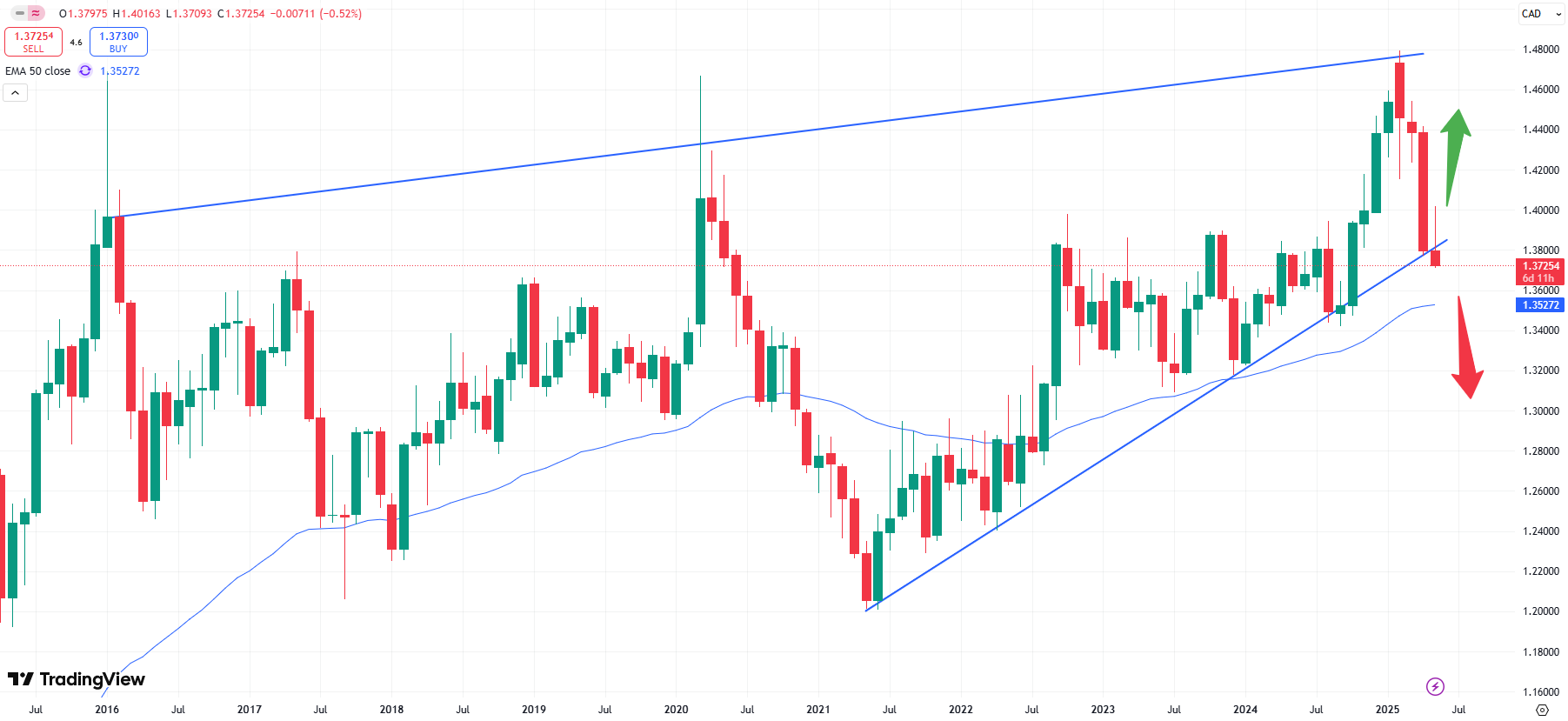 As the monthly chart above shows, the Dollar might lose further momentum. Technically the price has already broken to the downside, based on the broken trendline. If the 50- moving average breaks, a further fall in prices might be seen. This could move the market towards the ~1.3350 price range. The data from the US will be released on the 29th of May, 2025 at 14:30 CET.