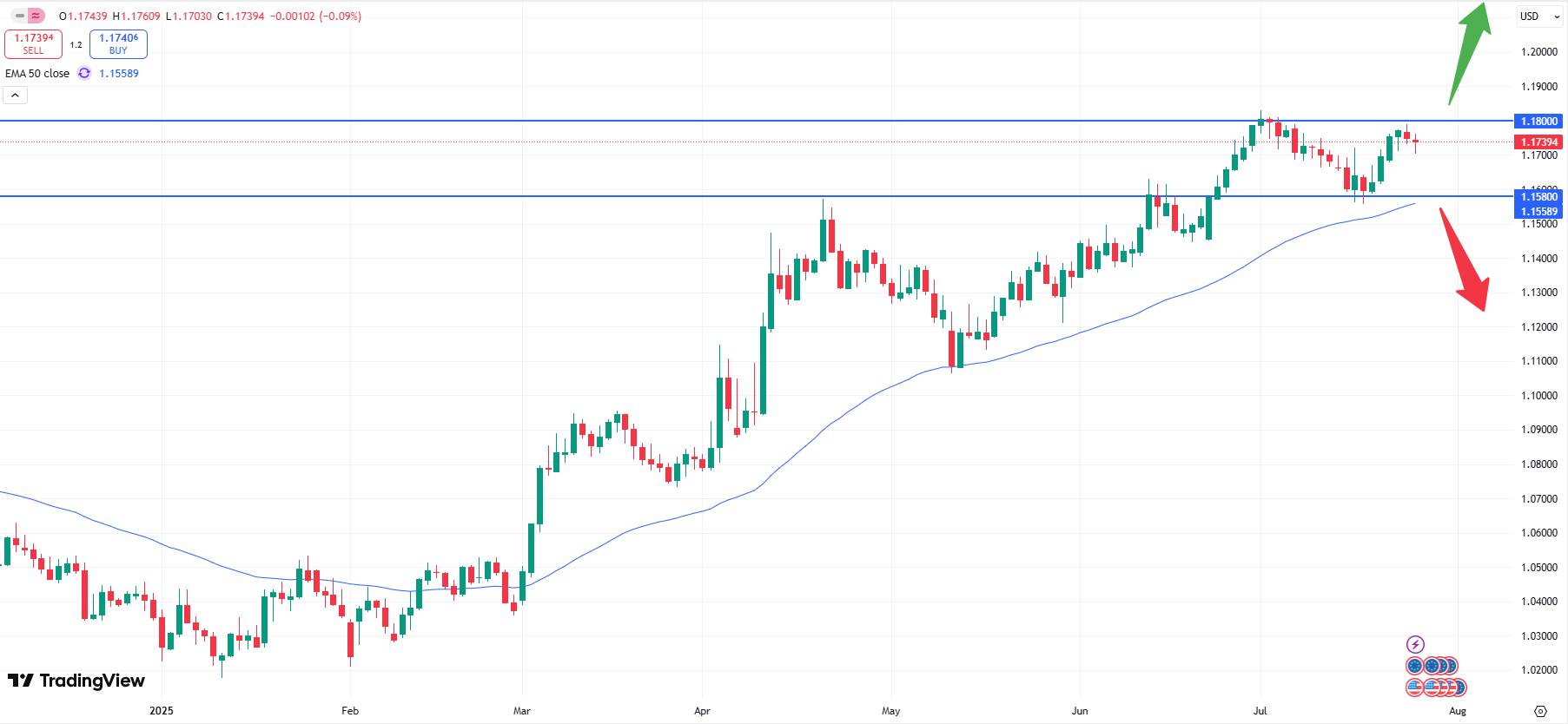 While the trend of the currency pair remains strongly bullish, retracements might also happen. A break of the technical resistance zone would cause the continuation. On the other hand, a break of support zone near the 50- moving average at 1.1580 might cause the market to break lower. The wording of Jerome Powell during the press conference will remain key. The data will be released on Wednesday, July 30 at 20:00 CET.