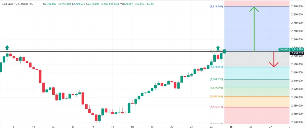 XAUUSD broke 4H resistance at USD 2,710, driven by safe-haven demand amid Ukraine’s first strike on Russia and recovery from post-election losses. If the breakout holds, bulls may target USD 2,820; if it fails, bears could aim for USD 2,670, with price action shaped by escalating Russia-Ukraine tensions fueling safe-haven flows.