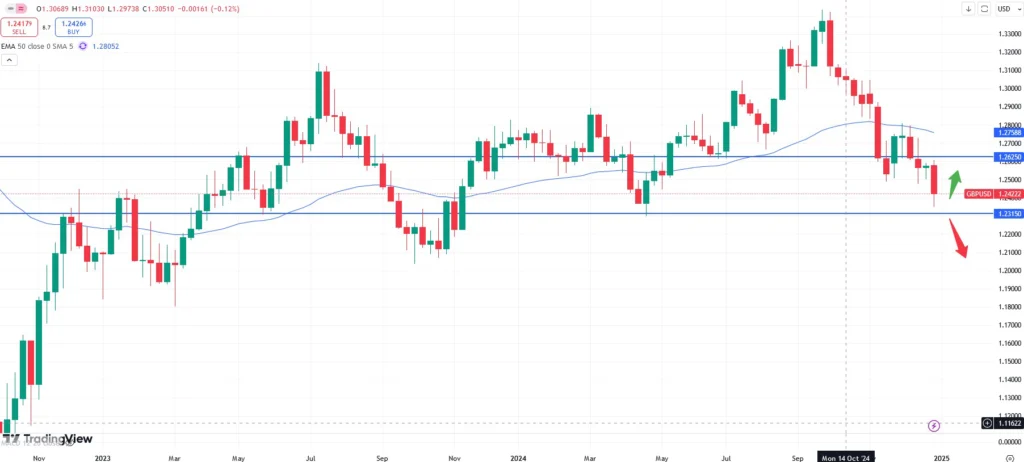 – US (Nonfarm Payrolls) labor market report – With 154.000 newly created jobs the NFP data is rather expected on the lower end. Seasonal input might still offer some impact here. The previous data from December had shown that 227.000 jobs had been added to the economy. The strength of the Dollar continued during the first trading days in 2025. Yet, the GBPUSD price chart might offer a slight retracement moving forward.