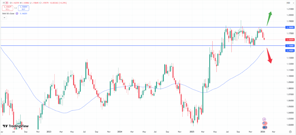 The EURUSD currency pair is losing market momentum. The exchange rate has moved lower and the weekly chart above might suggest that prices could fall further. A higher reading of the index might support such view, as the Fed might not be in a hurry to cut rates further, which would then support the Greenback. Currently, the pair remains capped below the technical resistance level of 1.1700. While prices fall, a break below the technical support level of 1.1500 might indicate a bigger slide in the price. The data will be released on Thursday, 22nd January at 14:30 CET.