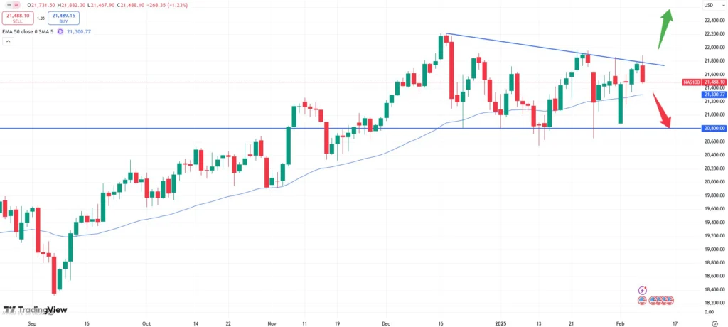 Last week the market fell after disappointing NFP data. Rising volatility caused the index to break to lower levels off the technical resistance line. Should now also the 50- moving average at around the 21,300 level give way, the tech index might fall further. The next strong support zone might only be found at the level of 21,800. Falling consumer prices would hint to the Fed rather cutting interest rates soon, which would be positive for the stock index. Yet, the current potentially stagnating trend in consumer prices might be a reason for the index to fall further. Markets currently seem prone for further profit taking ahead. The data will be published on Wednesday, 12th February at 14:30 CET.