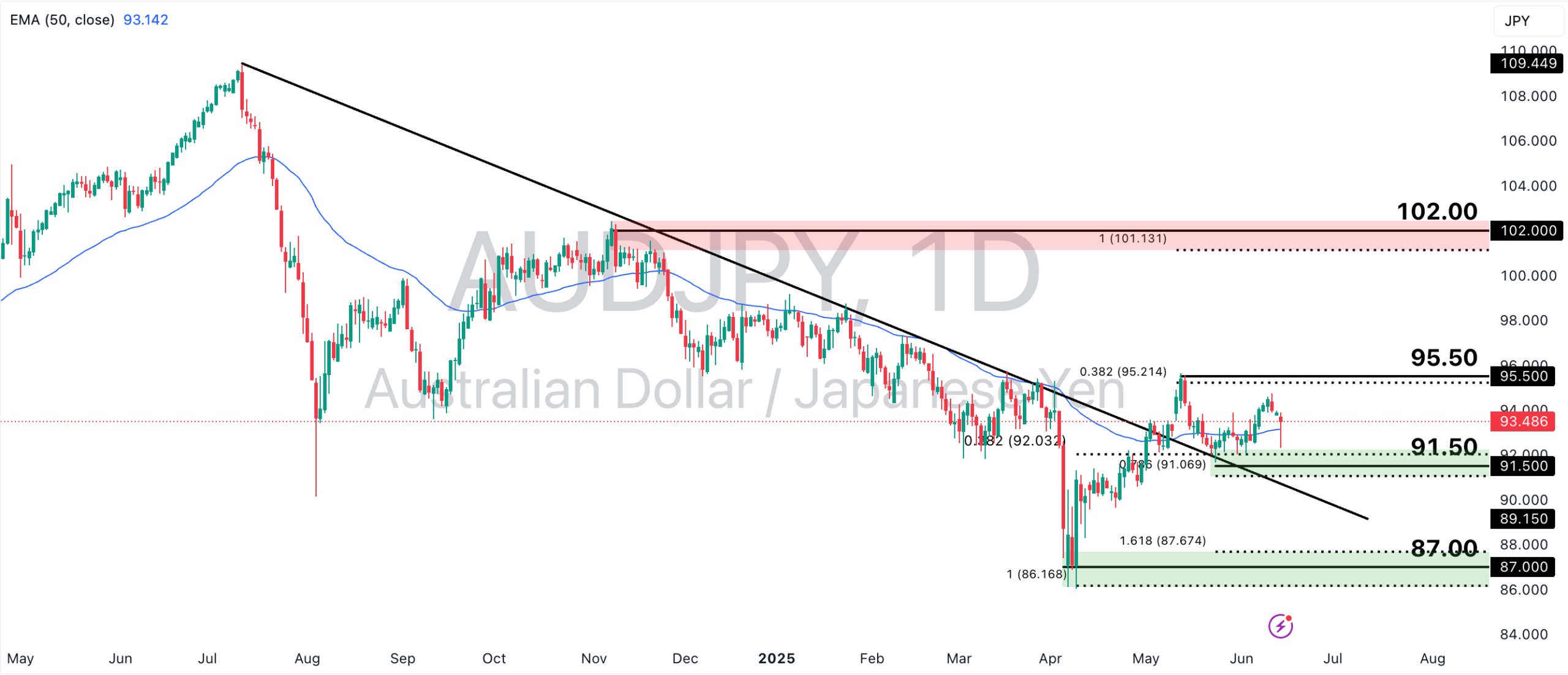 In contrast, the Aussie has shown resilience as a commodity-linked currency, especially against a weakening US dollar. Technical indicators suggest a potential shift in momentum for AUDJPY, though the Japanese yen’s safe-haven appeal remains a wild card amid escalating geopolitical tensions.